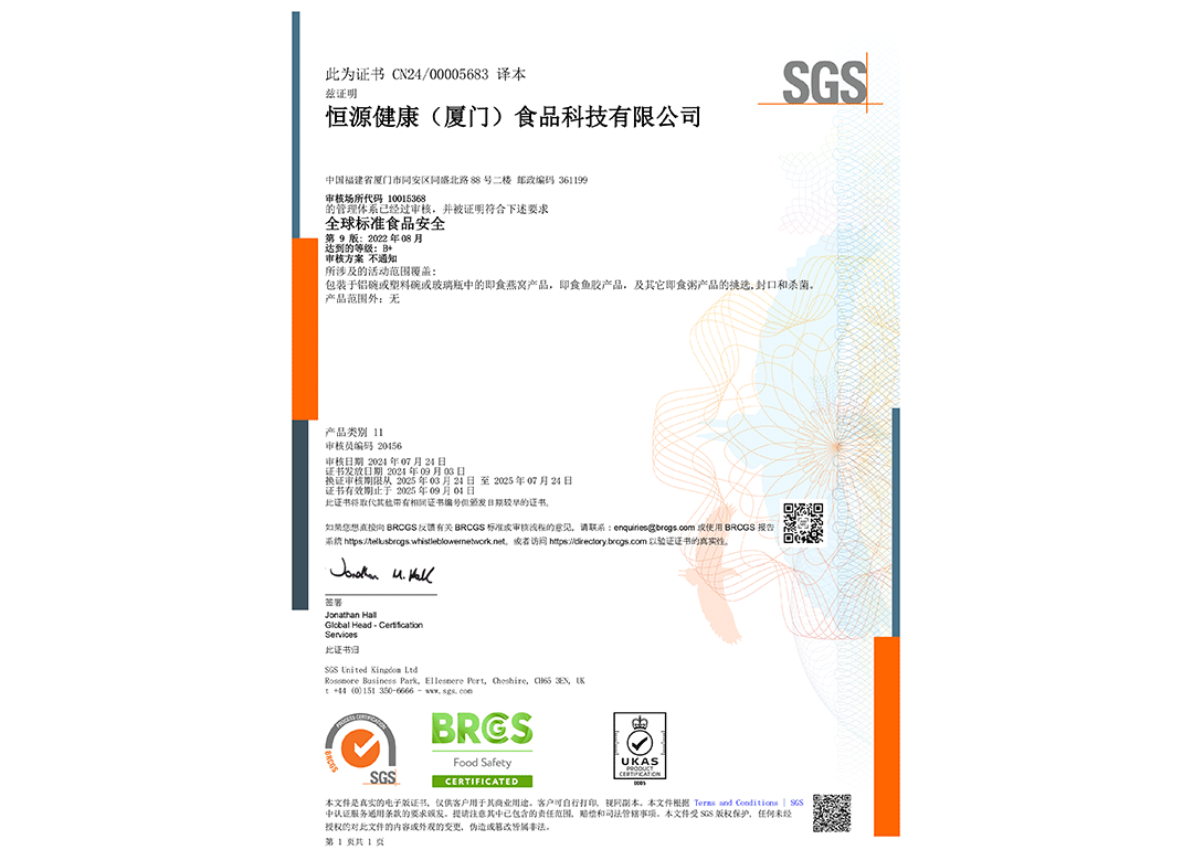 BRCGS食品安全全球标准认证