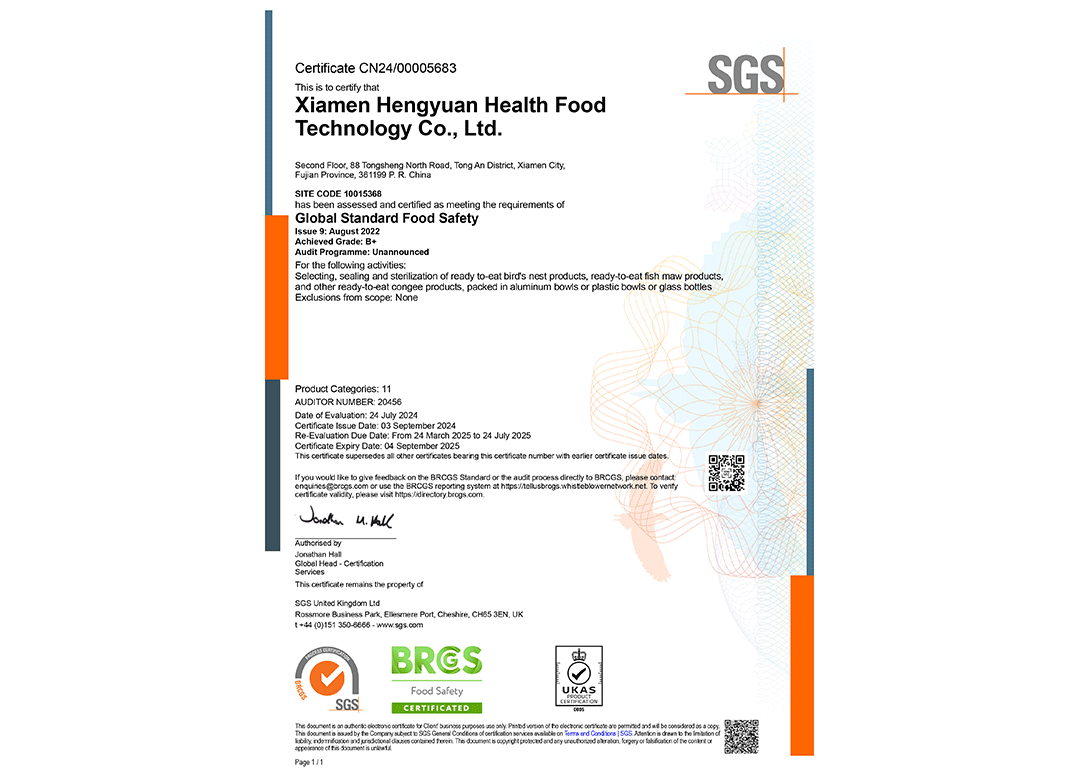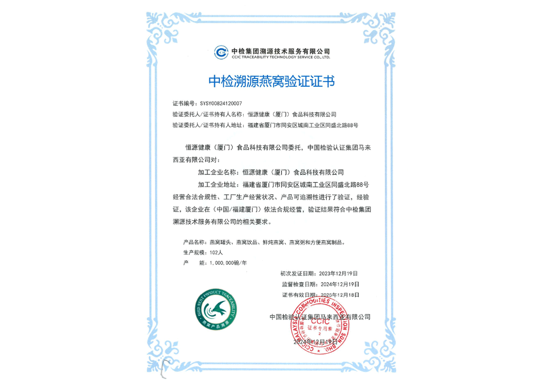 中检溯源燕窝验证证书