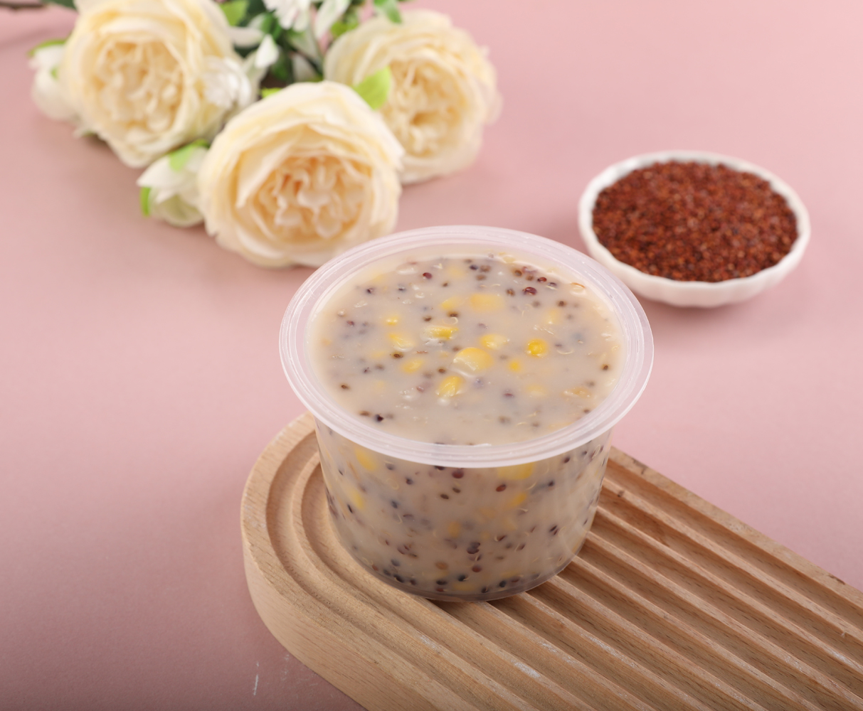 配料:水、有机纯牛奶、有机白砂糖、有机椰浆粉、有机三色青稞(白青稞、蓝青稞、黑青稞)、有机糯玉米粒、有机燕麦米、有机奇亚籽