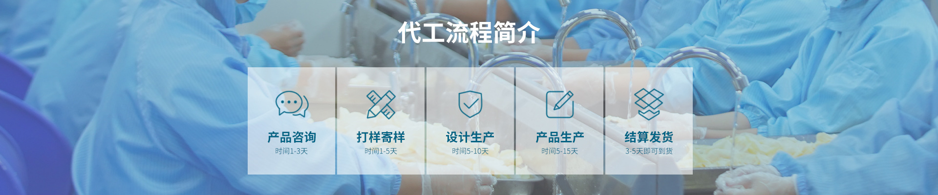 恒源健康(厦门)食品科技有限公司代工流程简介:产品咨询、打样寄样、设计生产、产品生产、结算发货。