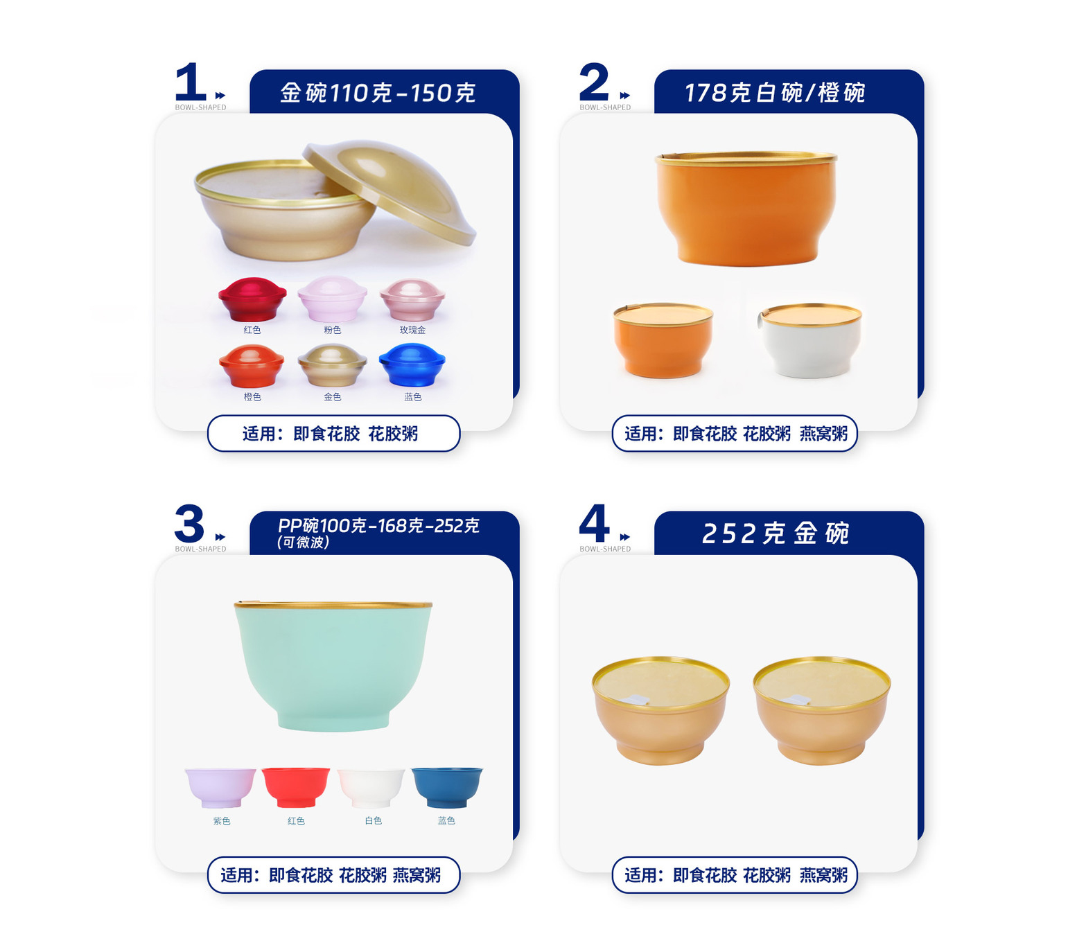 2. 178克白碗、橙碗,适用即食花胶、花胶粥、燕窝粥。