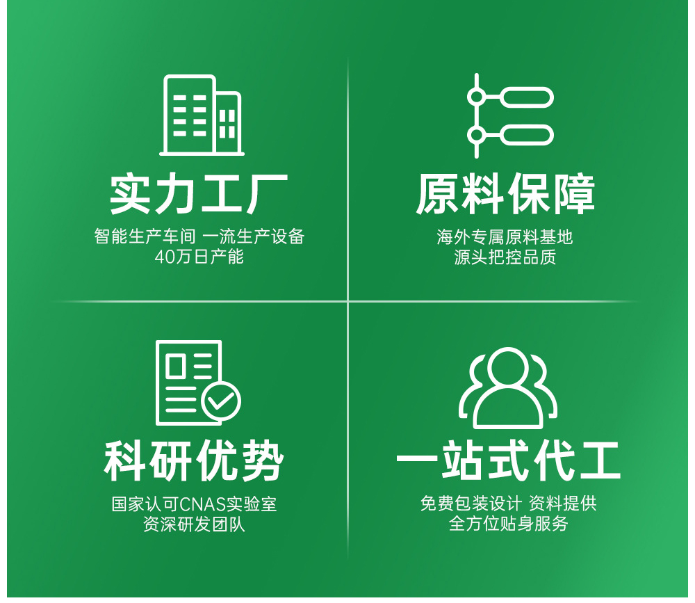 支持来料定制,OEM/ODM,配方定制,产品设计,包材采购,营销策划