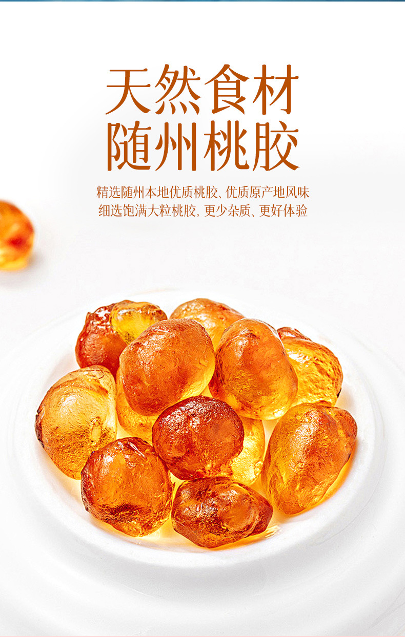天然食材,随州桃胶,精选随州本地优质桃胶、优质原产地风味,细选饱满大粒桃胶,更少杂质、更好体验