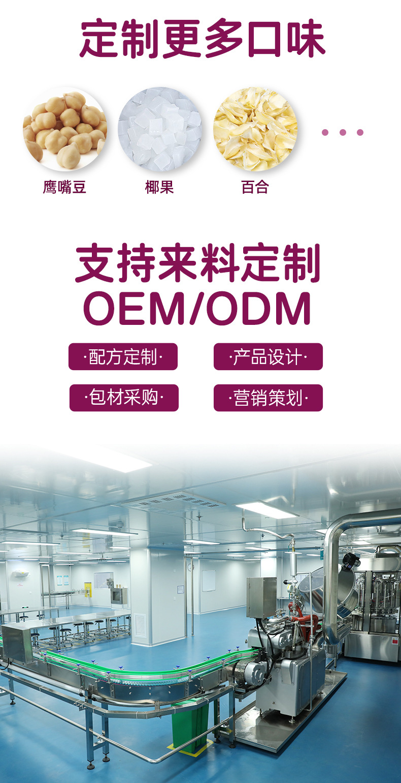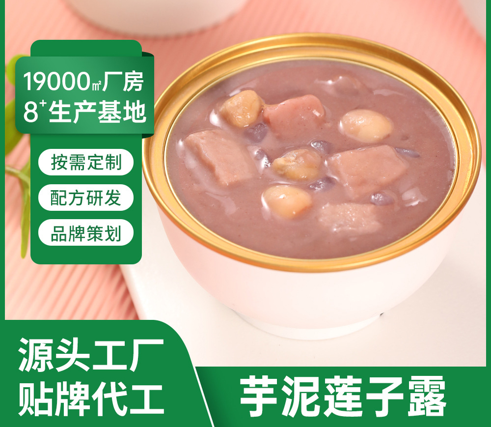 12000㎡厂房暨生产基地,配方研发,按需定制,品牌策划,源头工厂,贴牌代工,芋泥莲子露